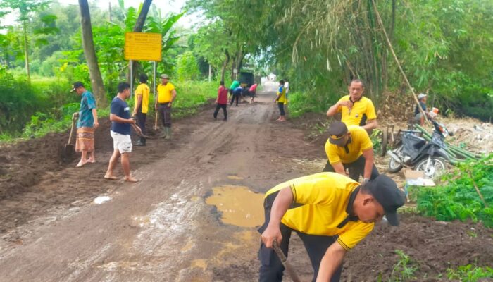 “Bakti sosial ini kami lakukan bersama perangkat desa dan warga untuk membersihkan lumpur sisa banjir agar akses jalan desa bisa kembali digunakan masyarakat,” ujar AKP Nanang Abidin.