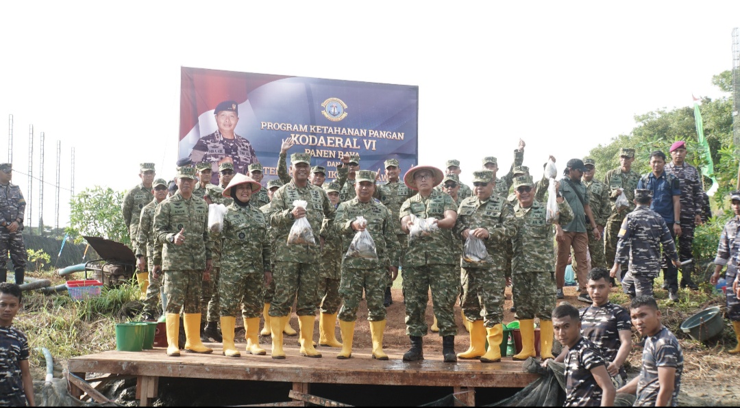 ” Kita tidak hanya memanen hasil bumi, tapi juga kembali menanam harapan melalui panen ikan dan tebar benih ikan hari ini,” ujar Dankodaeral VI