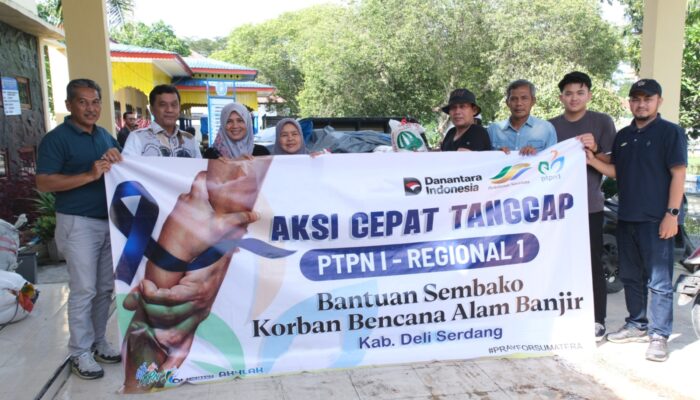 Divisinews.com//Tanjung Morawa,-* PT Perkebunan Nusantara I (PTPN I) Regional 1 melakukan aksi cepat tanggap dengan menyalurkan bantuan sembako kepada masyarakat yang terdampak banjir di Kabupaten Deli Serdang dan Kabupaten Langkat. Kegiatan ini merupakan wujud kepedulian perusahaan terhadap korban bencana dengan mengusung semangat “Peduli & Berbagi – Solidaritas Tanpa Batas.”