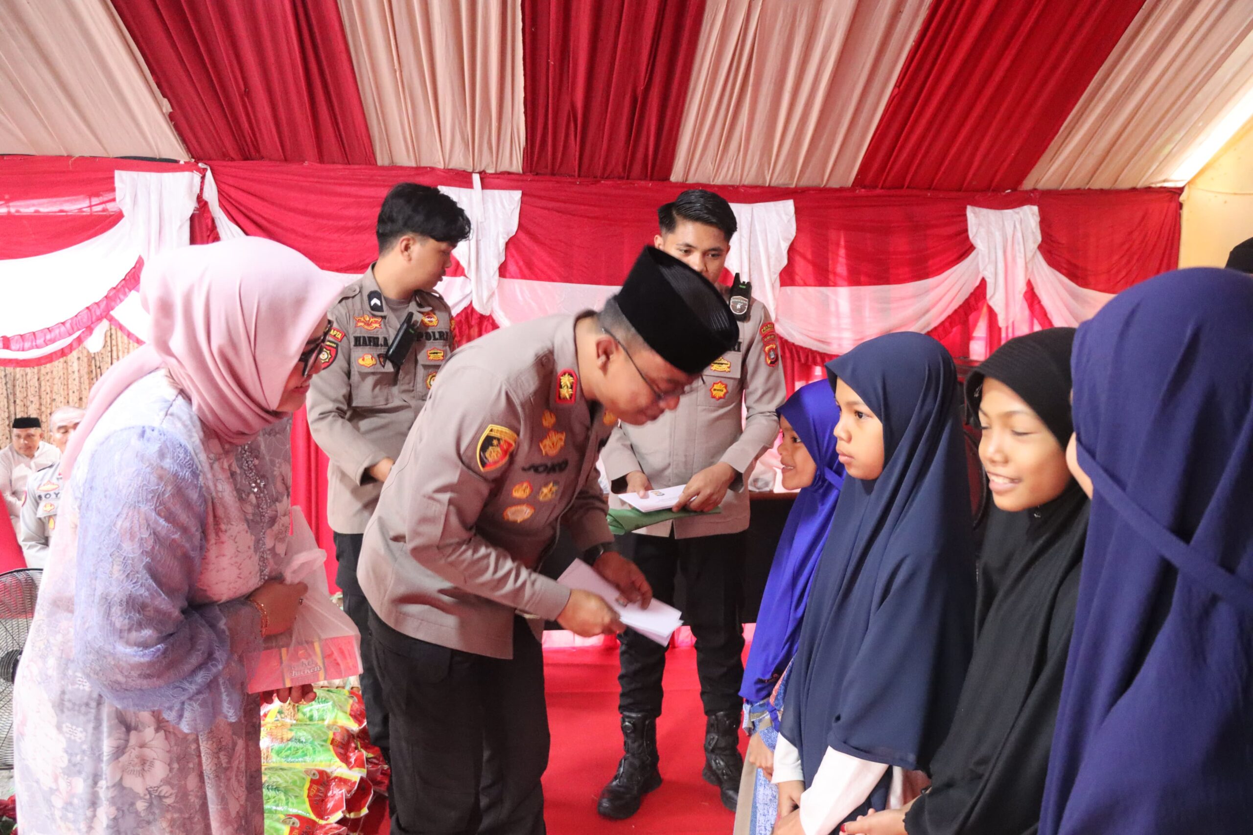 Kegiatan tersebut dihadiri oleh Wakapolres Pasangkayu Kompol Agussalim Arsyad, S.Sos., S.Ag., M.H, Ketua Bhayangkari Cabang Pasangkayu Ny. Rini Joko, Kabag SDM Kompol Sujarwo, S.H, Kabag Ops AKP Mustamir, S.H., M.H, para Pejabat Utama Polres Pasangkayu, Kapolsek Pasangkayu IPTU Candra Boyke Ombong, serta tokoh masyarakat, tokoh agama, tokoh pemuda, para santri dan anak-anak yatim.