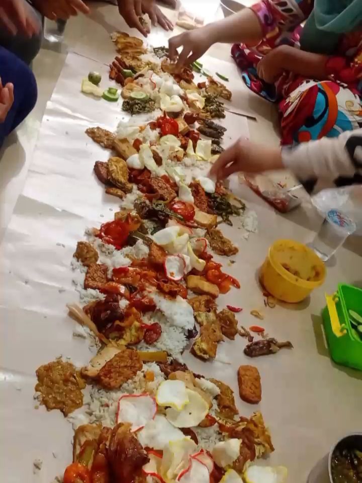 Berdasarkan pantauan di lokasi, puluhan santri putra dan putri berkumpul didampingi oleh para ustadzah. Tak hanya para santri, orang tua wali murid pun turut hadir memeriahkan suasana. Mereka tampak menikmati hidangan yang disajikan di atas hamparan kertas minyak secara bersama-sama (ngaliwet), yang melambangkan kebersamaan dan kesederhanaan.