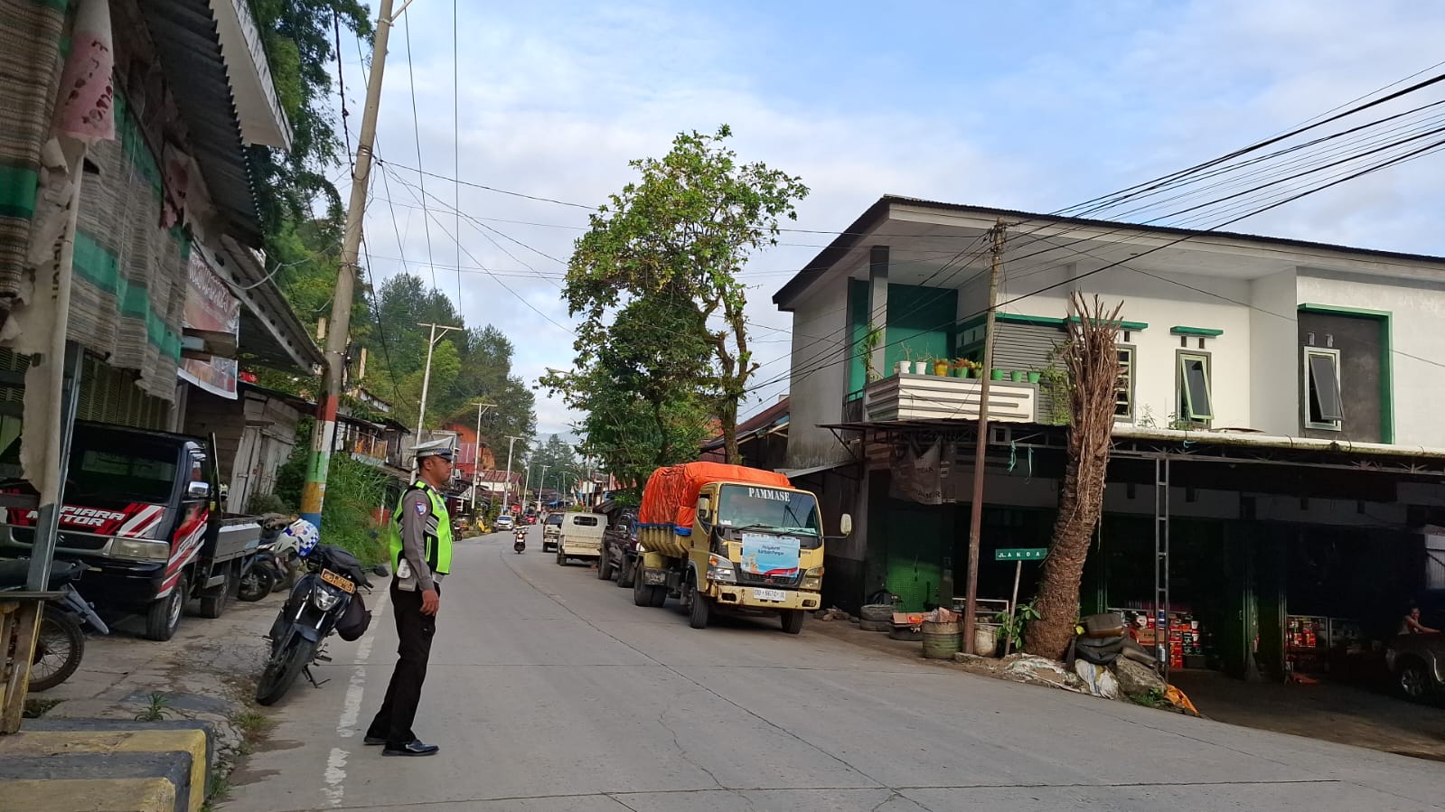Personel Sat Lantas diterjunkan secara langsung untuk memastikan kelancaran arus kendaraan serta memberikan rasa aman bagi para pengguna jalan.