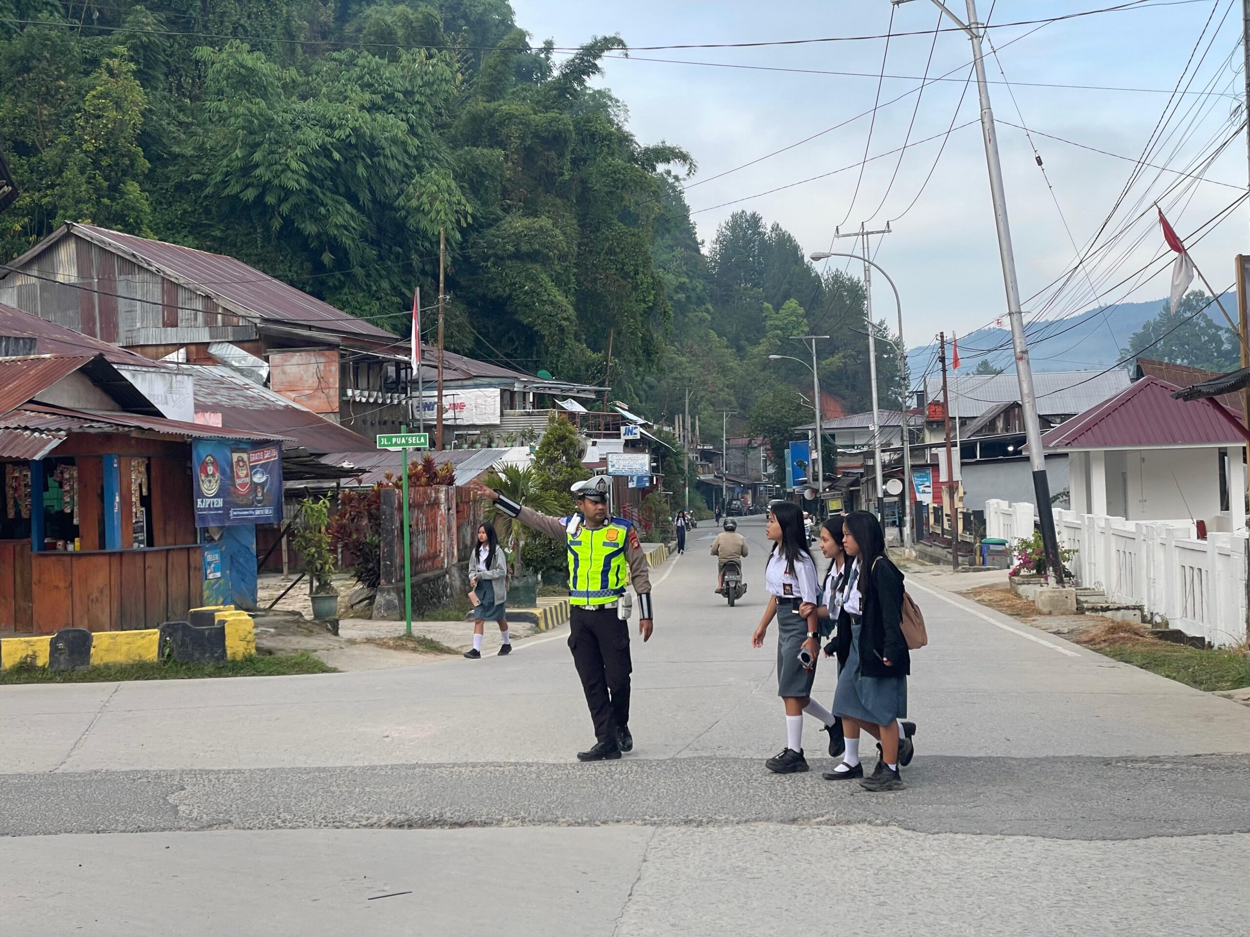 Kegiatan tersebut dilaksanakan oleh personel Sat Lantas Polres Mamasa dengan fokus pada pengaturan dan penjagaan arus lalu lintas guna memastikan kelancaran mobilitas masyarakat pada jam sibuk pagi hari.