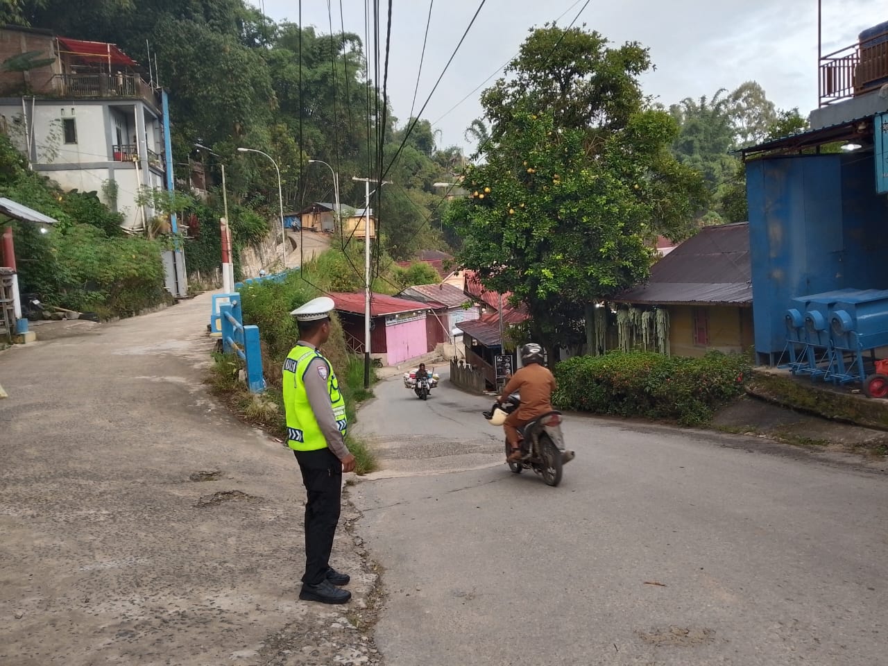 MAMASA–Dalam rangka memberikan pelayanan prima kepada masyarakat serta mengantisipasi potensi kecelakaan lalu lintas, Satuan Lalu Lintas Polres Mamasa melaksanakan kegiatan pengaturan dan penjagaan arus lalu lintas pada Senin pagi, 20 April 2026