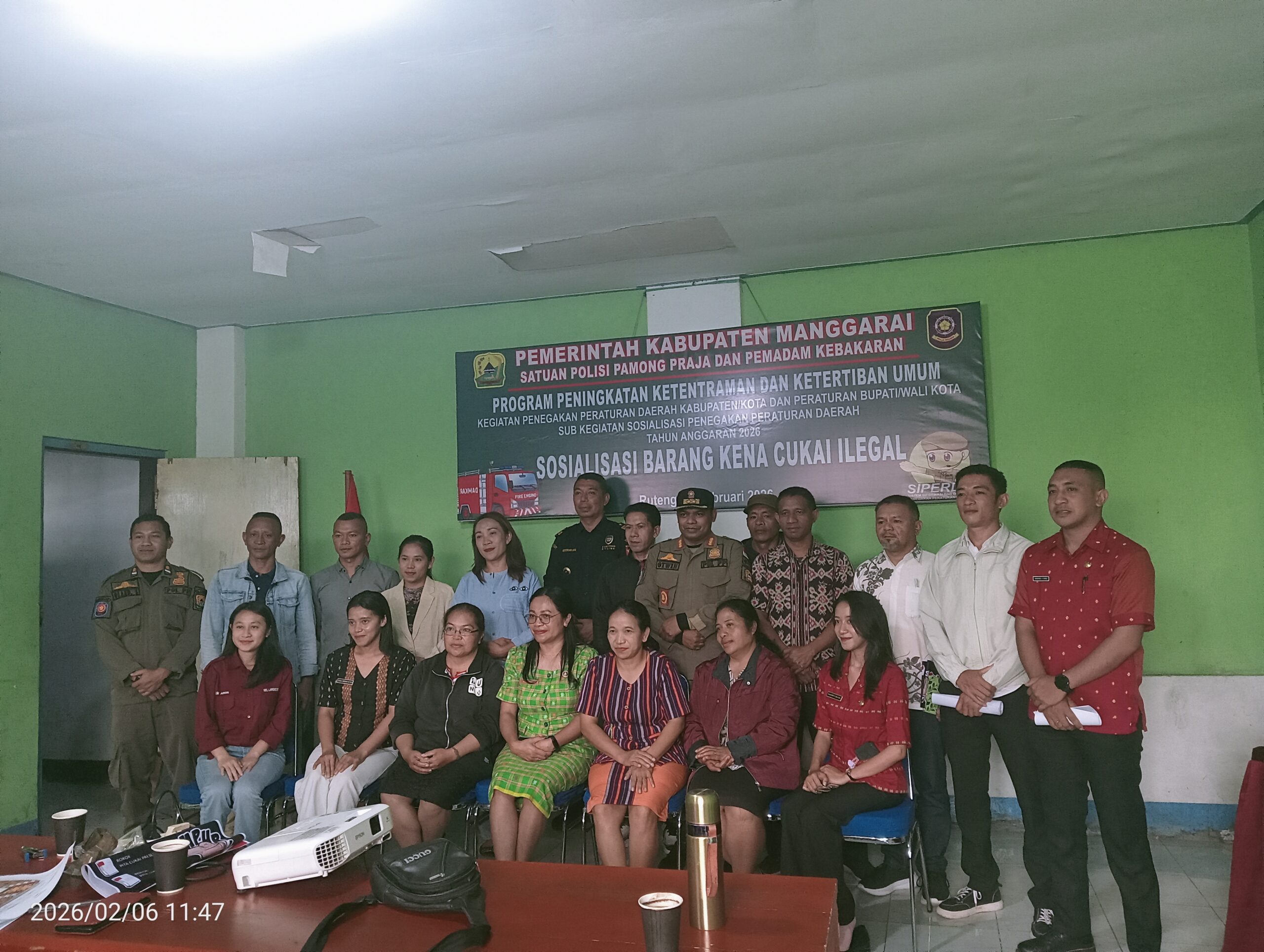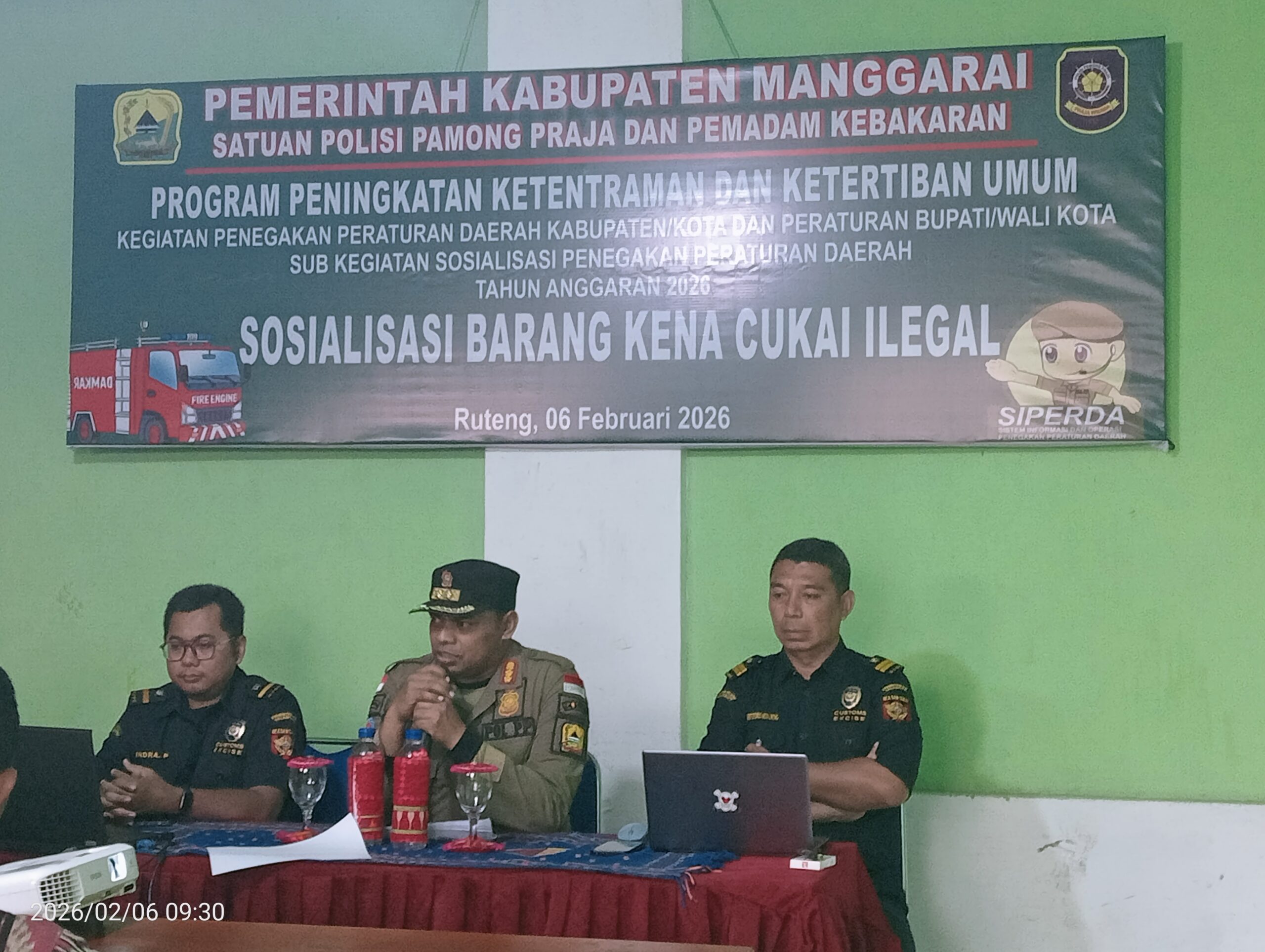 Ruteng, NTT | divisinews.com — Satuan Polisi Pamong Praja (Satpol PP) dan Pemadam Kebakaran Kabupaten Manggarai bersama Kantor Bea Cukai Labuan Bajo menyatakan perang terhadap peredaran Barang Kena Cukai (BKC) ilegal, khususnya rokok tanpa pita cukai, melalui kegiatan sosialisasi penegakan hukum yang digelar di Kantor Satpol PP dan Damkar Manggarai, Jumat (6/2/2026).