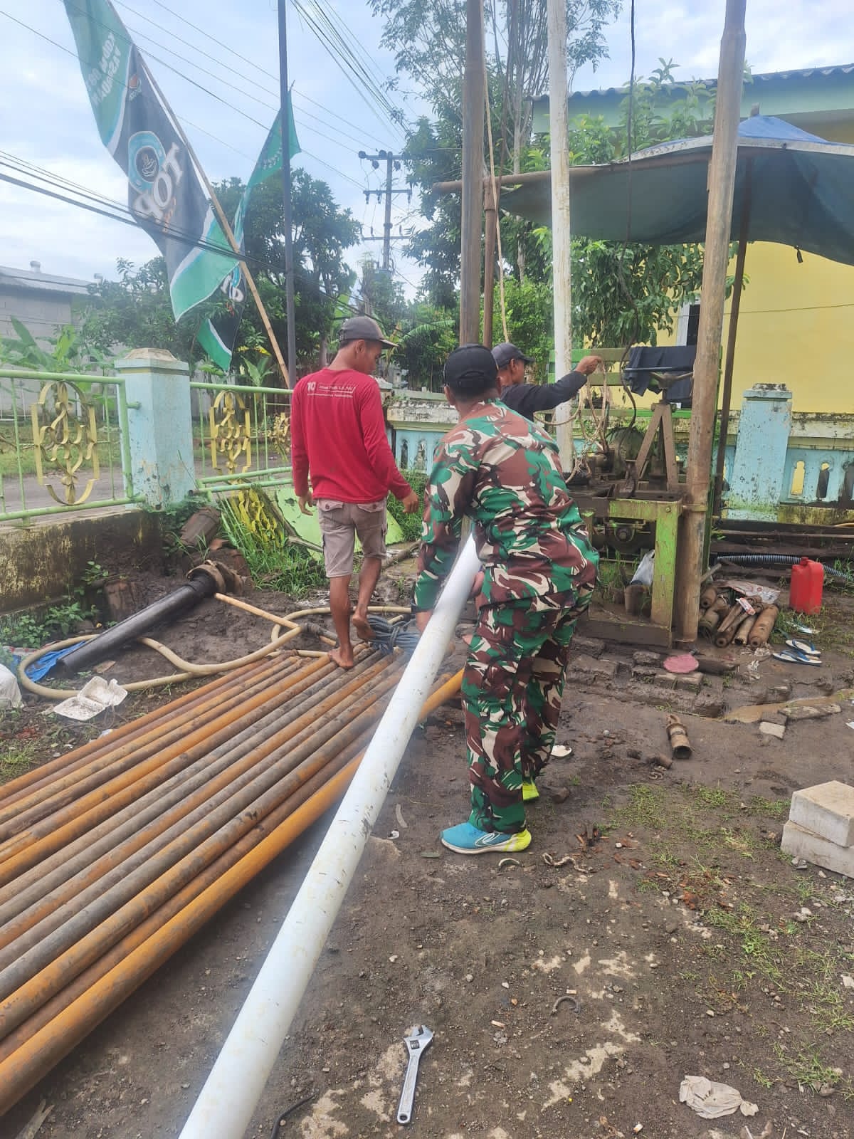 Di lokasi, prajurit TNI bersama warga bergotong royong memasang instalasi pipa untuk menghubungkan sumur bor dengan sistem distribusi air. Tahap ini menjadi proses penting agar air bersih dapat segera dimanfaatkan masyarakat.