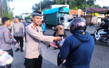 MAMASA–Dalam rangka menyemarakkan bulan suci Ramadhan 1447 Hijriah, jajaran kepolisian melaksanakan kegiatan sosial berupa pembagian takjil gratis kepada masyarakat. Kegiatan ini mulai dilaksanakan pada Jumat, 06 Maret 2026.