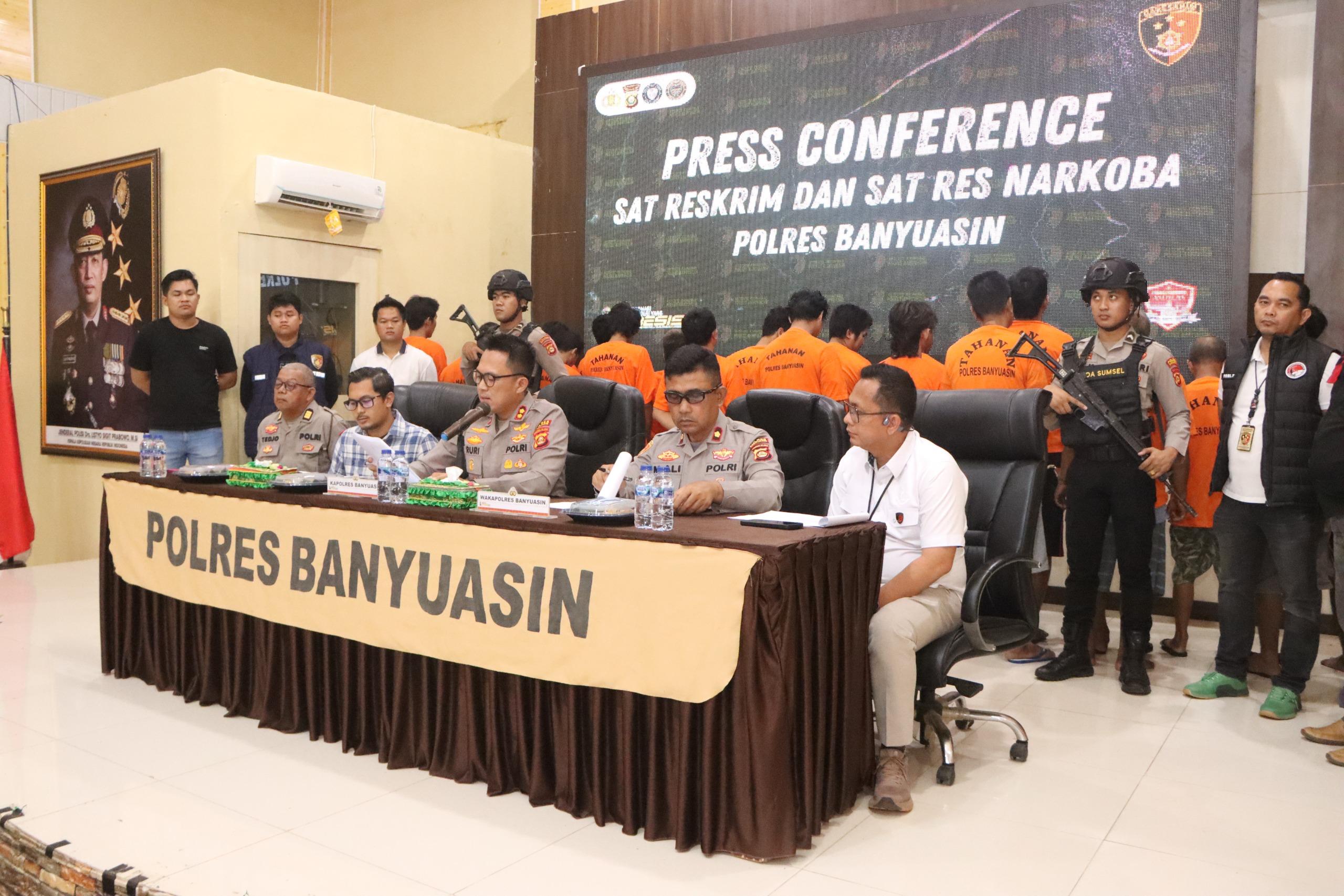 Divisinews.com // BANYUASIN– Sinergi dengan masyarakat dan mitra media dinilai kunci keberhasilan Polres Banyuasin dalam mengungkap berbagai tindak pidana sepanjang bulan Juni lalu, termasuk dalam Operasi Senpi Musi 2025. Hal ini ditegaskan Kapolres Banyuasin, AKBP Ruri Prastowo, dalam konferensi pers Coffee Morning sekaligus rilis bulanan di Aula Sanika Satyawada, Selasa (8/7) pagi.