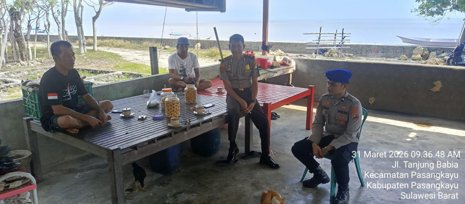 Pasangkayu — Personel Satuan Polisi Air dan Udara (Sat Polairud) Polres Pasangkayu terus menunjukkan komitmennya dalam menjaga keamanan dan ketertiban wilayah perairan melalui kegiatan pembinaan masyarakat (Binmas Perairan). Kegiatan tersebut dilaksanakan pada Selasa, 31 Maret 2026 sekitar pukul 09.00 WITA di pesisir Pantai Tanjung Babia, Kelurahan Pasangkayu, Kecamatan Pasangkayu, Kabupaten Pasangkayu.