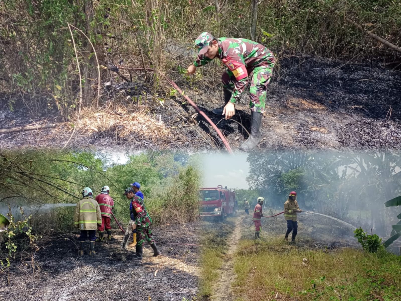 Setelah mendapat laporan, Serka Edy S. langsung meluncur ke lokasi untuk membantu proses pemadaman bersama Babinsa dan warga setempat. Tak berselang lama, satu tim pemadam kebakaran yang terdiri dari enam personel tiba di lokasi untuk memperkuat upaya pemadaman. Dengan kerja sama antara Babinsa, tim Damkar, warga, dan Kepala Desa, api akhirnya berhasil dipadamkan sebelum meluas ke area lain.