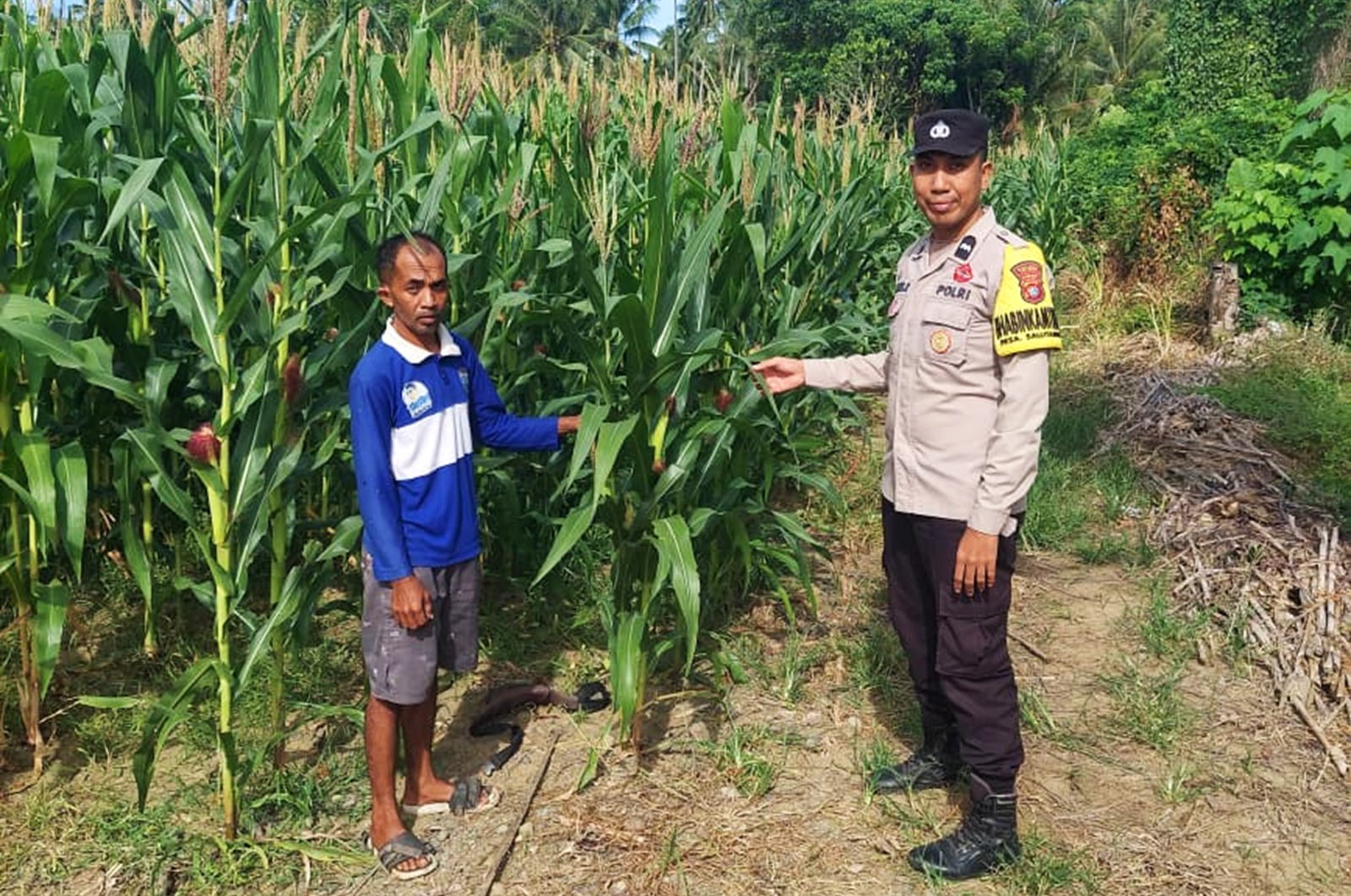 Dalam kesempatan tersebut, Aipda Farid Rachman berinteraksi langsung dengan para anggota kelompok tani, mendengarkan berbagai kendala yang dihadapi, mulai dari perawatan tanaman hingga ketersediaan pupuk. Ia juga memberikan dorongan agar para petani tetap menjaga kualitas tanaman jagung yang saat ini tengah memasuki fase pertumbuhan penting.