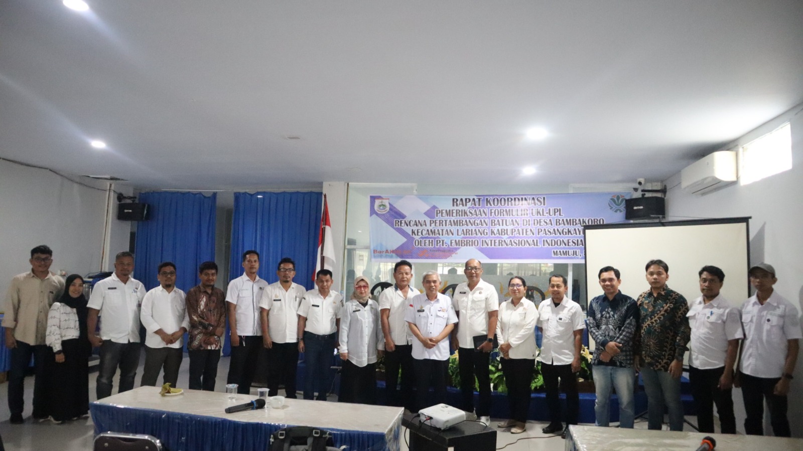 Rapat koordinasi ini merupakan tindak lanjut dari permohonan pemeriksaan formulir UKL-UPL yang diajukan oleh Direktur PT. Embrio Internasional Indonesia, serta hasil pemeriksaan administrasi dokumen melalui sistem Amdalnet. Rencana kegiatan pertambangan yang dibahas berlokasi di Desa Bambakoro, Kecamatan Lariang, Kabupaten Pasangkayu.