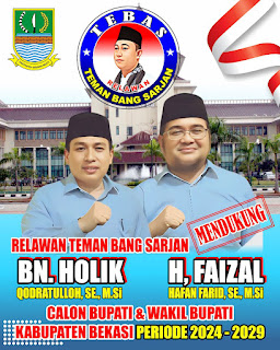 Pasangan BN Holik Qodratulloh dan H. Faisal Hafan Farid dikenal dengan komitmen mereka dalam membangun Kabupaten Bekasi yang lebih maju dan sejahtera melalui program-program yang pro-rakyat. Dukungan dari berbagai pihak, termasuk Bang H. Sarjan dan tim TEBAS, diharapkan semakin memperkuat peluang kemenangan mereka dalam Pilkada yang diprediksi akan berlangsung ketat.