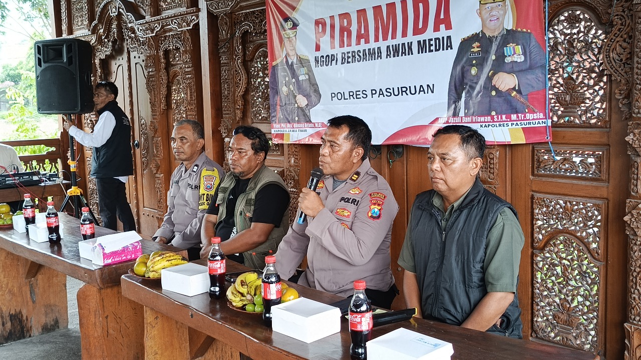 divisinews.com // PASURUAN — Dalam rangka memperingati Hari Ulang Tahun Humas Polri ke-74, Polres Pasuruan menggelar kegiatan “Ngopi Bareng Awak Media” yang dikemas dalam agenda PIRAMIDA (Pemolisian Masyarakat dan Media).