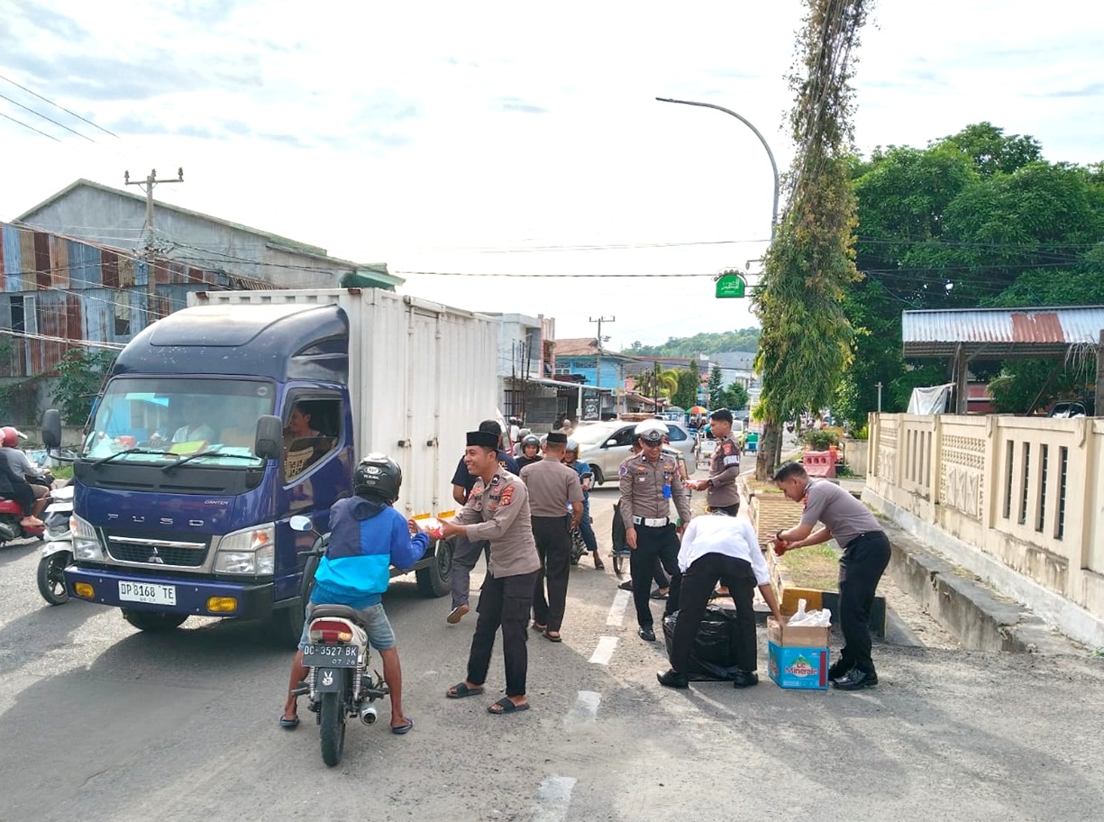 Menjelang waktu berbuka puasa, sejumlah personel Polres Majene turun langsung ke tepi jalan untuk membagikan paket takjil kepada para pengendara yang melintas di jalur tersebut. Aksi berbagi ini pun disambut antusias oleh masyarakat, khususnya para pengendara roda dua maupun roda empat yang tengah dalam perjalanan menuju rumah atau tempat berbuka puasa.
