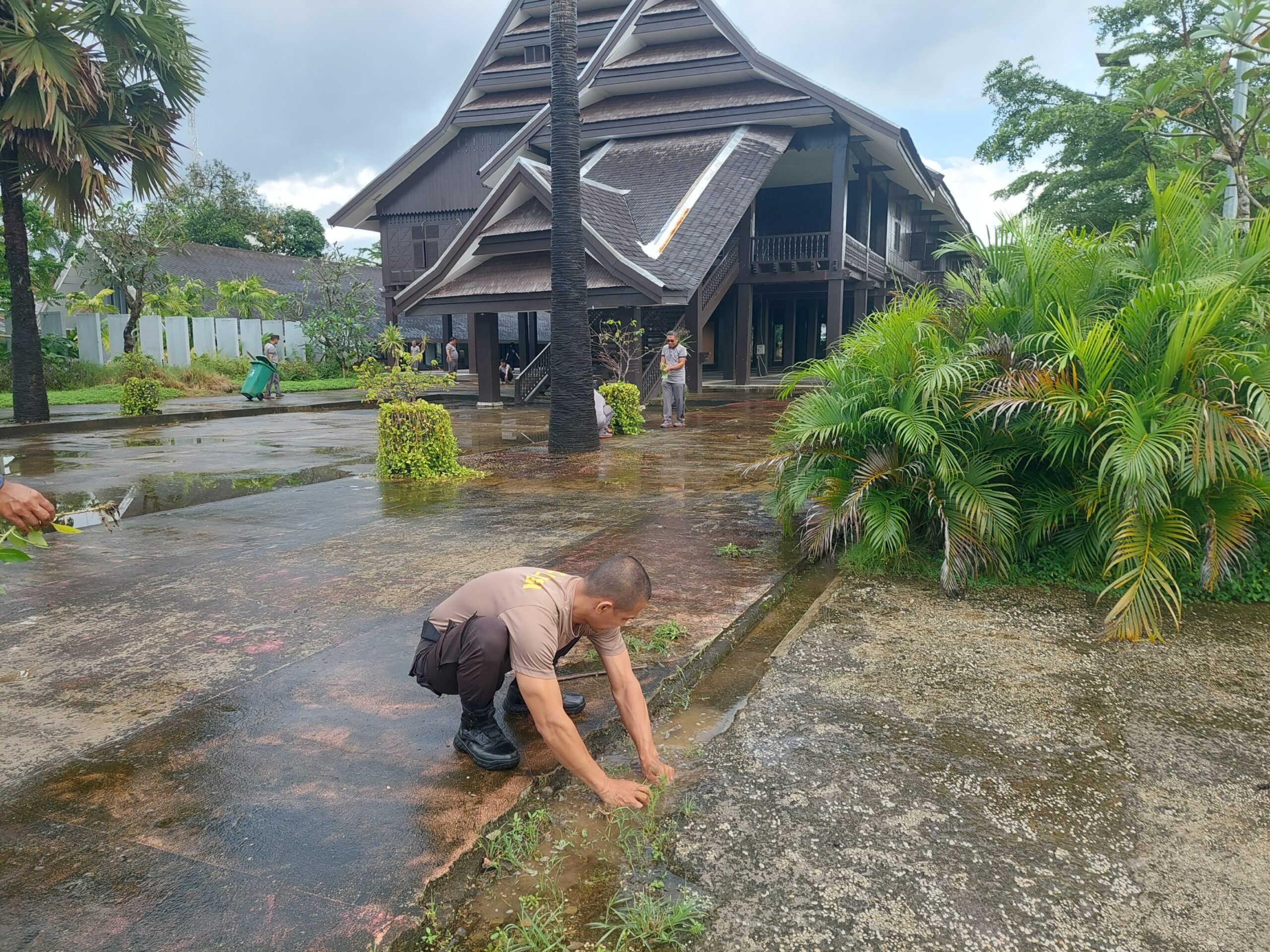 Seluruh personel tampak antusias dan penuh semangat dalam membersihkan lingkungan, mulai dari menyapu, membersihkan sampah, hingga merapikan area halaman museum guna memastikan kawasan bersejarah tersebut tetap bersih, asri, dan rapi.