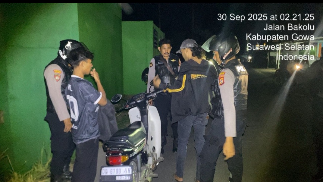 Divisinews.com//Gowa, – Unit Perintis Presisi Samapta Polres Gowa kembali melaksanakan patroli di sejumlah titik rawan tindak kejahatan jalanan di wilayah hukum Polsek Pallangga, Senin (29/9/2025) malam. Kegiatan tersebut dipimpin langsung oleh Ps. Kanit Turjawali Samapta, AIPTU Murtala Kadir.