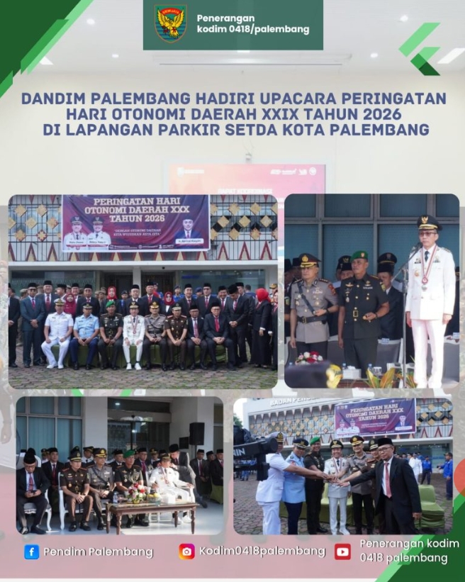 Sementara itu, Dandim 0418/Palembang Kolonel Arh Erik Novianto,S.sos menyampaikan bahwa momentum Hari Otonomi Daerah harus dimaknai sebagai penguatan sinergi antara pemerintah daerah dan seluruh elemen, termasuk TNI dan Polri.