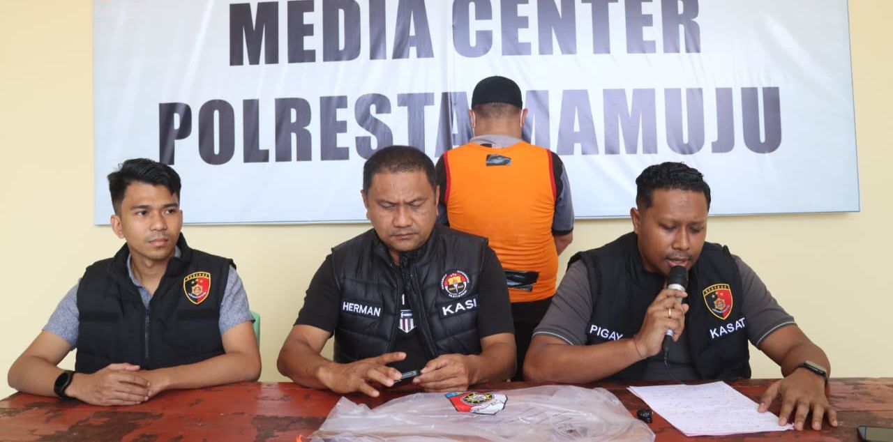 Dalam konferensi pers hari ini Sabtu (11/4) Kasat Reskrim Polresta Mamuju AKP Agustinus Pigay menjelaskan bahwa dari hasil penyelidikan, terungkap fakta bahwa benar telah terjadi aksi pengancaman yang dilakukan oleh seorang pria berinisial IR (56) terhadap korban M dengan menggunakan senjata tajam jenis parang.