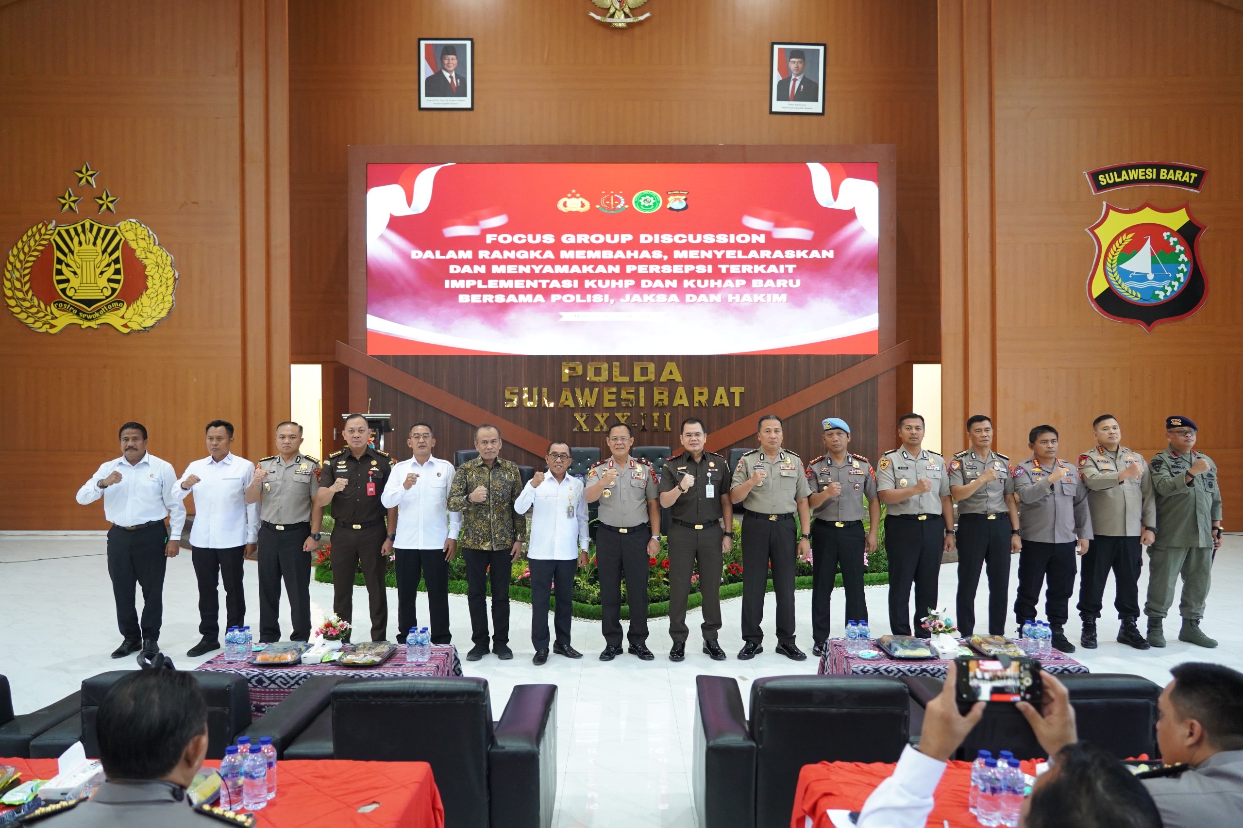 Divisinews.com, Sulawesi Barat – Wakapolda Sulbar, Brigjen Pol Hari Santoso, secara resmi membuka kegiatan Focus Group Discussion (FGD) dalam rangka membahas, menyelaraskan dan menyamakan persepsi implementasi KUHP dan KUHAP baru bersama Polisi, Jaksa dan Hakim, Senin (26/1/26) di Aula Marannu Polda Sulbar.
