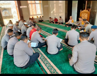 Wakapolres Gowa KOMPOL Gani, S.H, M.H berkesempatan untuk memberikan tausiyah dan siraman rohani kepada para personel.