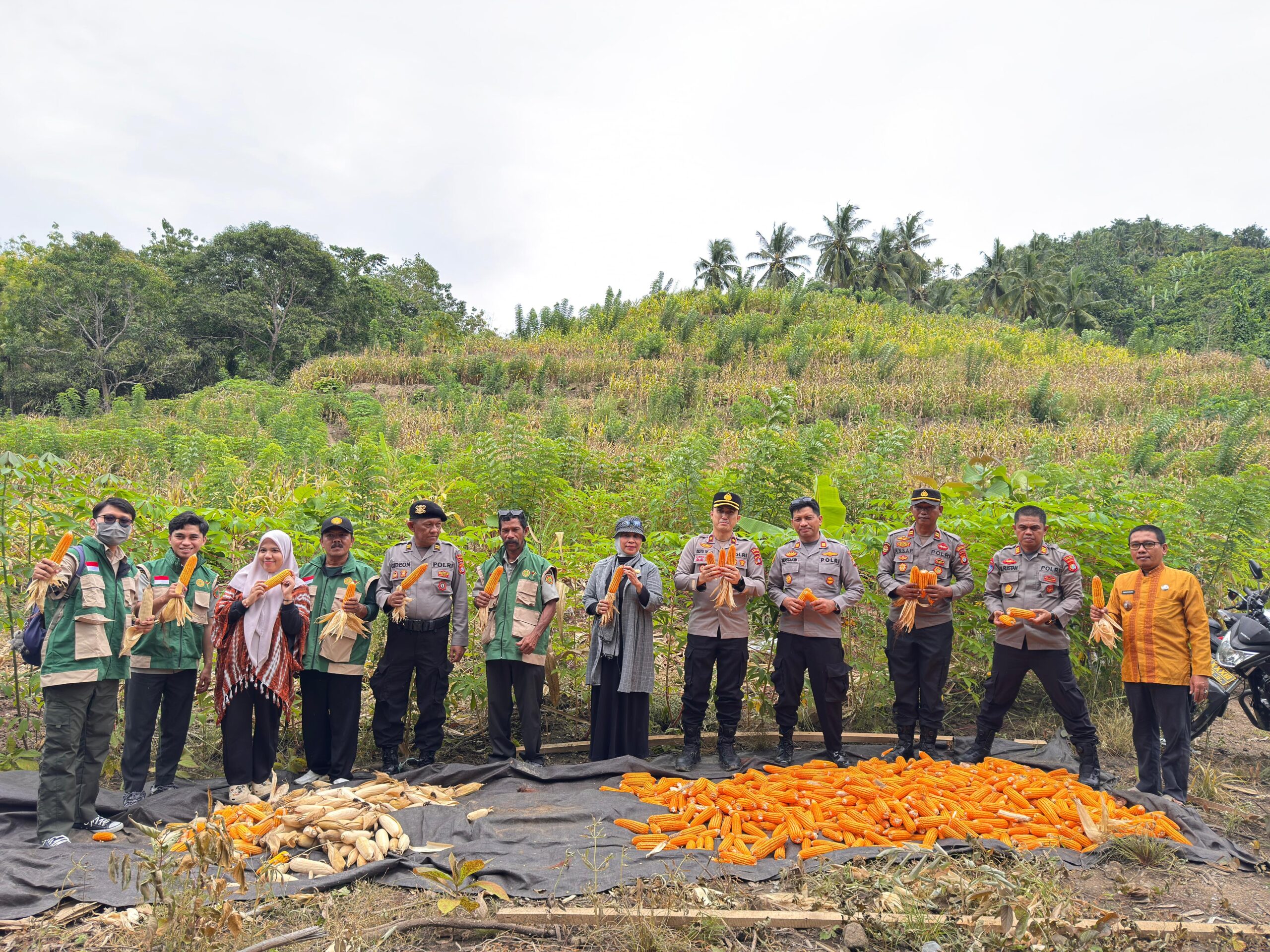 Dalam kegiatan tersebut, Wakapolres Polman bersama PJU Polres Polman, personel Polsek Allu, pemerintah Kecamatan Allu, dan masyarakat setempat melaksanakan panen jagung secara bersama-sama sebagai wujud sinergitas lintas sektor.