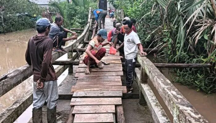 Jelas terlihat warga berinisiatif untuk melakukan gontong royong melakukan perbaikan dan dengan anggaran dana swadaya dialokasi ke jembatan yang rusak tersebut.
