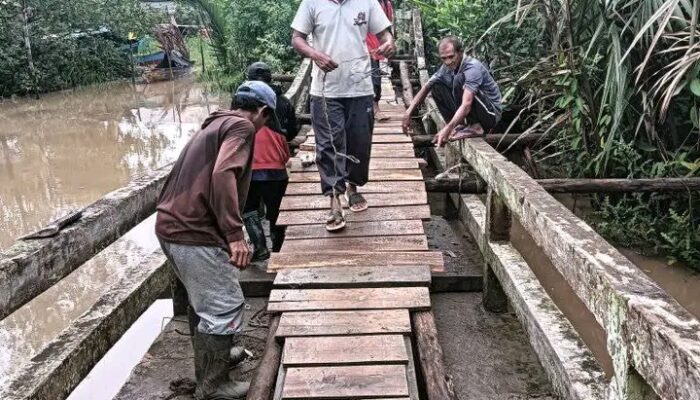 Jelas terlihat warga berinisiatif untuk melakukan gontong royong melakukan perbaikan dan dengan anggaran dana swadaya dialokasi ke jembatan yang rusak tersebut.