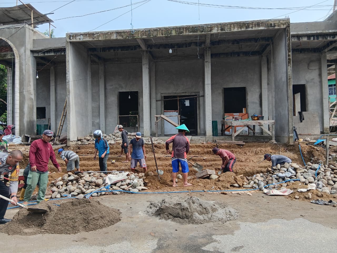 Majene _ Sebagai wujud nyata pengabdian kepada masyarakat, Bhabinkamtibmas Polsek Malunda Polres Majene, Bripka Abd. Basir, turut ambil bagian dalam kegiatan gotong royong bersama warga binaannya pada pembangunan Masjid Baitul Mukminin di Dusun Mosso Timur, Desa Lombong Timur, Kecamatan Malunda, Kabupaten Majene, Jumat (9/1/26).