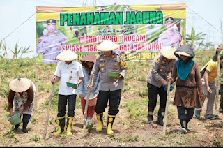 Aksi penanaman jagung dipimpin langsung Wakapolres Jombang Kompol Hari Kurniawan bersama ADM Perhutani, Aspers, PPL Pertanian, Kepala Desa Japanan dan Lembaga Masyarakat Desa Hutan (LMDH).